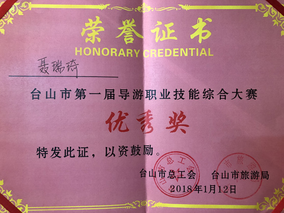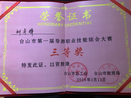 本次導(dǎo)游職業(yè)技能大賽的豐碩成果,展示了我社臺(tái)山公司導(dǎo)游隊(duì)伍的時(shí)代風(fēng)采及高超的專業(yè)技能,讓廣大游客對(duì)我司專業(yè)導(dǎo)游的優(yōu)質(zhì)服務(wù)樹立了信心的保證。