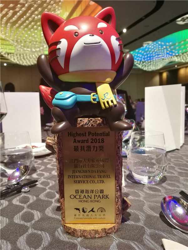 在上周(3月12日)的香港海洋公園“Top Agent Thank You Party”上,大方旅游實(shí)力榮獲香港海洋公園“2018最具潛力獎(jiǎng)”!