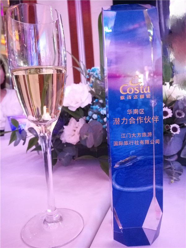 隨后在3月14日“歌詩達(dá)郵輪華南區(qū)2018年度頒獎(jiǎng)盛典”上,大方旅游榮獲歌詩達(dá)郵輪“華南區(qū)潛力合作伙伴”!