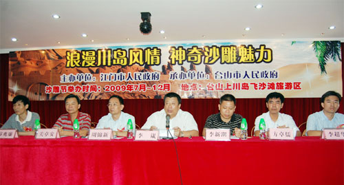 藍天碧海,椰風帆影,6月30日,2009中國(江門)僑鄉(xiāng)旅游節(jié)籌委會在風景秀麗的國家4X級旅游景區(qū)—上川島飛沙灘隆重舉辦新聞發(fā)布會,宣告規(guī)模恢宏的首屆臺山川島沙雕節(jié)將于七月揭開神秘的面紗,向國內外游客開放。