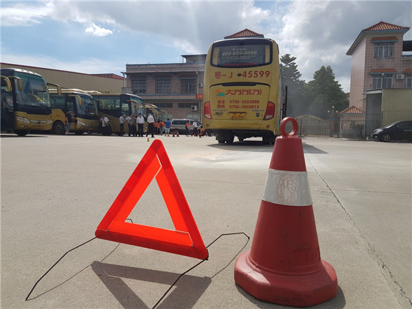 為做好暑假旅游團隊的安全保障,令廣大市民安心、放心出游, 6月27日下午,在江門市蓬江區交警等部門的直接指導下,江門市大中旅游汽車服務有限公司和江門大方導游服務有限公司在大中公司本部聯合舉辦了旅游大巴應急逃生及消防演練,當天未有出團任務的導游司機共五十多人參加了本次演練。