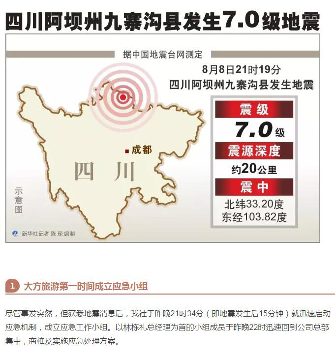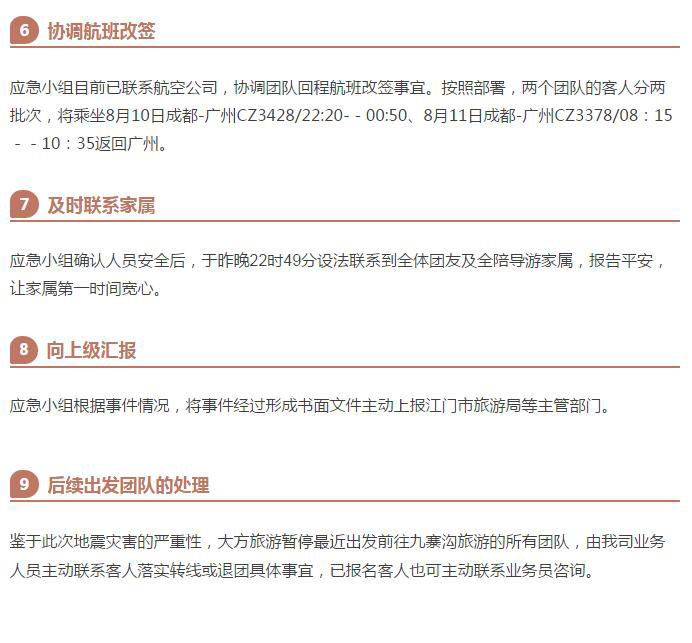 江門大方旅游迅速應對九寨溝7級地震,全體團友已安全撤離震中災區