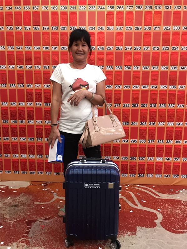 禮品真的好棒哦!有空氣凈化器、凈水器等,恭喜阿姨抽到行李箱一個!更有手氣超好的親,抽到了飛往美國洛杉磯的機票!表示非!常!羨!慕!