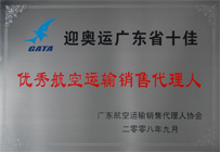 廣東航空運輸銷售代理人協會頒發的 優秀航空運輸銷售代理人 |
