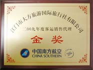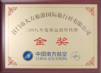 中國南方航空頒發的 2008年度客運銷售代理“金獎” |