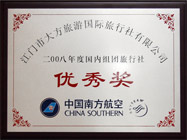 中國南方航空頒發的 2008年度國內組團旅行社“優秀獎” |