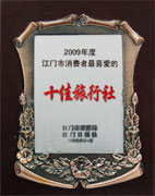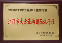 江門市旅游局頒發的 2008江門市五邑游十佳旅行社 |