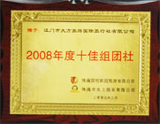 珠海圓明新園旅游有限公司頒發的“2008年度十佳組團社” |