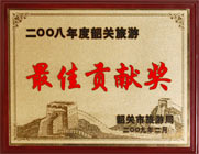 韶關市旅游局頒發的 2008年度韶關旅游“最佳貢獻獎” |