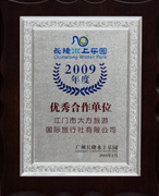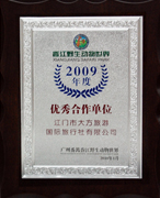 臺山康橋溫泉度假村頒發的 “2008年度最佳合作伙伴” |
